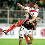 la defensa peruana que difícilmente podía controlarlo. Y a los 19 minutos,