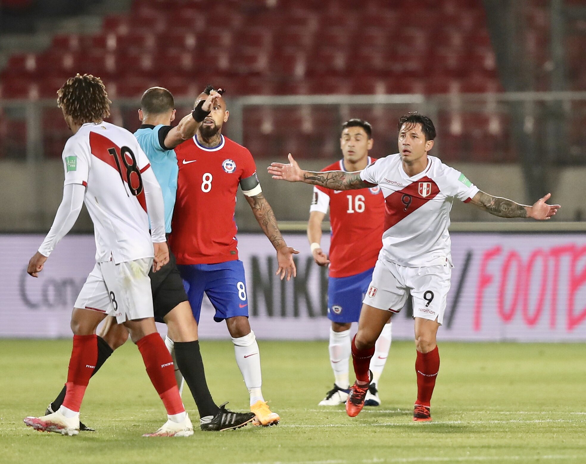 peruanos pidieron que el juez vaya a revisar la jugada en el monitor del